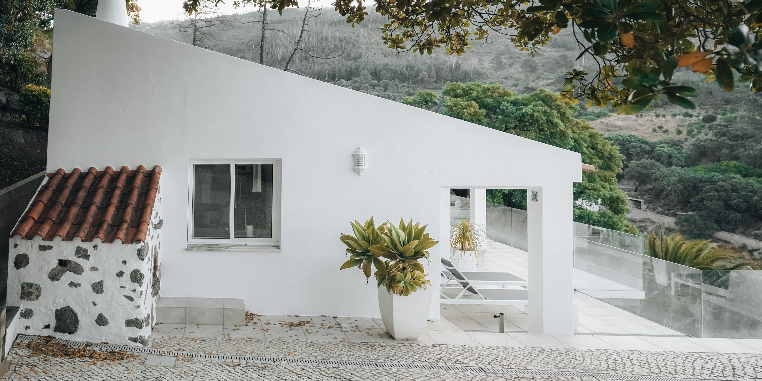 Je to takový malý domek ve svahu nad Atlantikem. Není přímo u moře, ale o to větší je tam klid. Obklopený zelení, na zahradě vlastní mandarinky a avokádo. Na letní bydlení pro dva ideální velikost kolem 60 m2 se stejně velkou terasou s výhledem do dálek. Bonusem je pak samostatný hostinský domek níž ve svahu a bazén s výhledem. Jak už to bývá, zdál se být z počátku v lepším stavu, než se ukázalo během rekonstrukce. Při první návštěvě jsme se rozhodli, že rekonstrukci domu a dispoziční změny budeme minimalizovat. Ano, celá dispozice by se dala při razantním zásahu překopat úplně do základu, ale výsledek tomu neodpovídal. Navíc jsme se obávali řešení s úřady, protože lokalita je památkově chráněná.