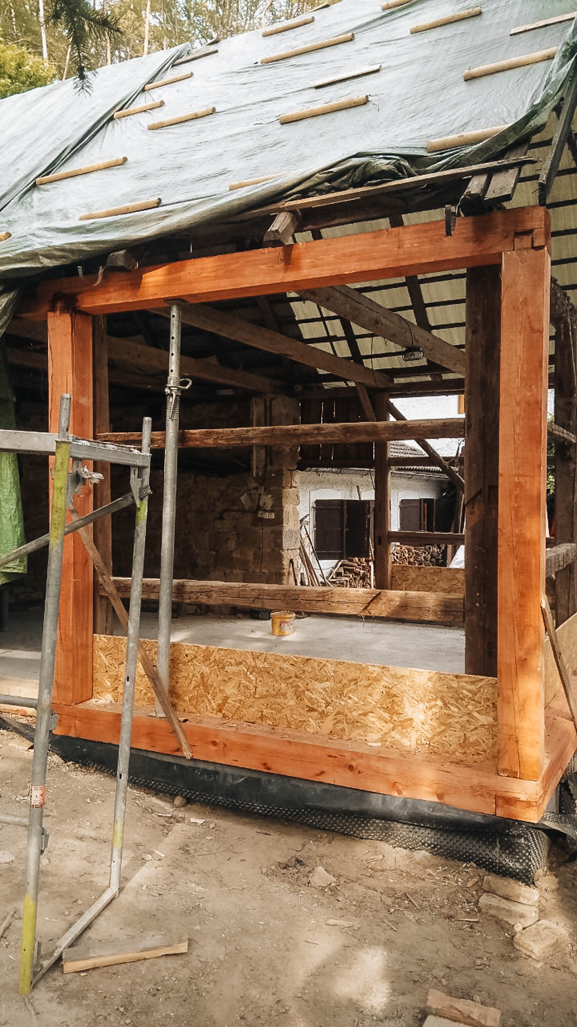 U dřevěné stodoly obvykle postupujeme tak, že se stavba nejprve opatrně svlékne. Sundá se plášť, odkryje konstrukce a ta se postupně heveruje, podepírá a stabilizuje. Teprve potom se řeší nové základy. Ty mohou být klasicky lité, ale někdy dává větší smysl lehká konstrukce z dřevěných nebo ocelových nosníků s provětrávanou deskou zespodu. Máme rádi řešení, kdy se zbytečně nemíchají těžké a lehké konstrukční principy. Stavba tak zůstává lehká a přirozeně větrá.