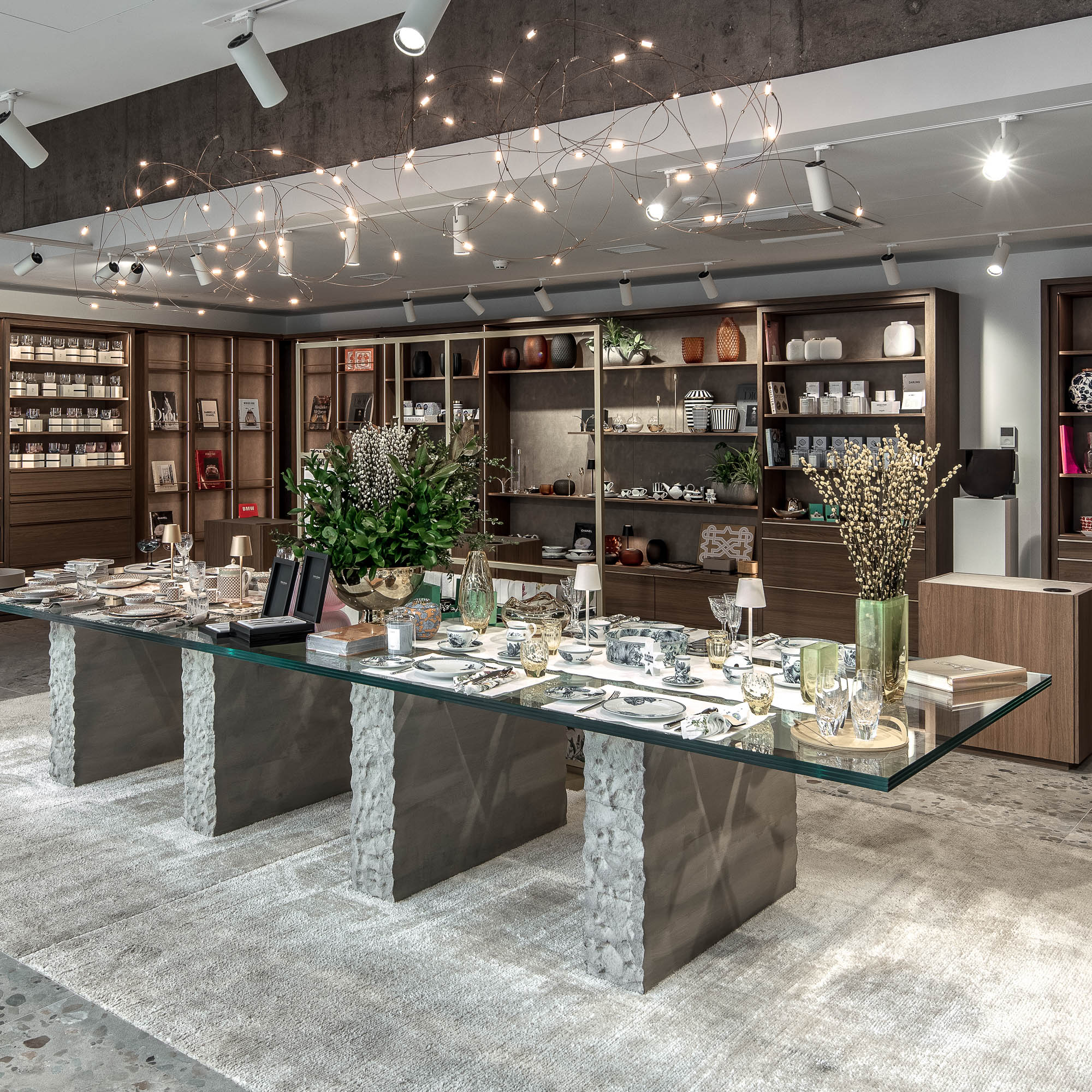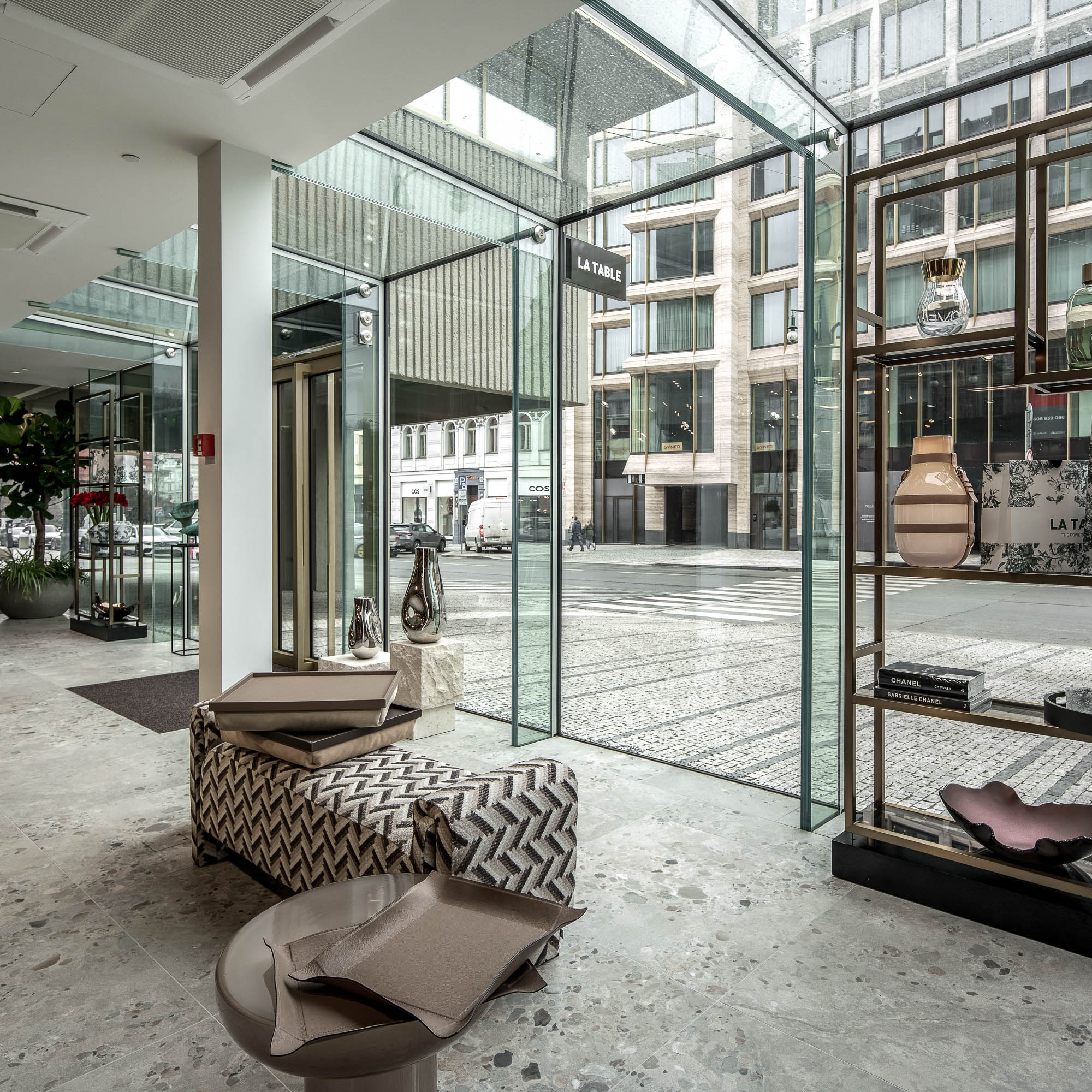 Druhá realizace butiku LA TABLE vznikla v Pařížské, v parteru hotelu Fairmont. Prostor, ve kterém hrají hlavní roli luxusní produkty pro stolování, jsme tentokrát zasadili do syrového rámce brutalistní architektury a přiznaných betonových konstrukcí. Právě proto jsme nešli cestou další tvrdosti. Do robustního prostoru jsme naopak vnesli jemnost, teplo a klid. Luxus tu nevzniká okázalostí, ale přesností, materiálem a atmosférou, ve které dostává stolování stejnou váhu jako samotný interiér.