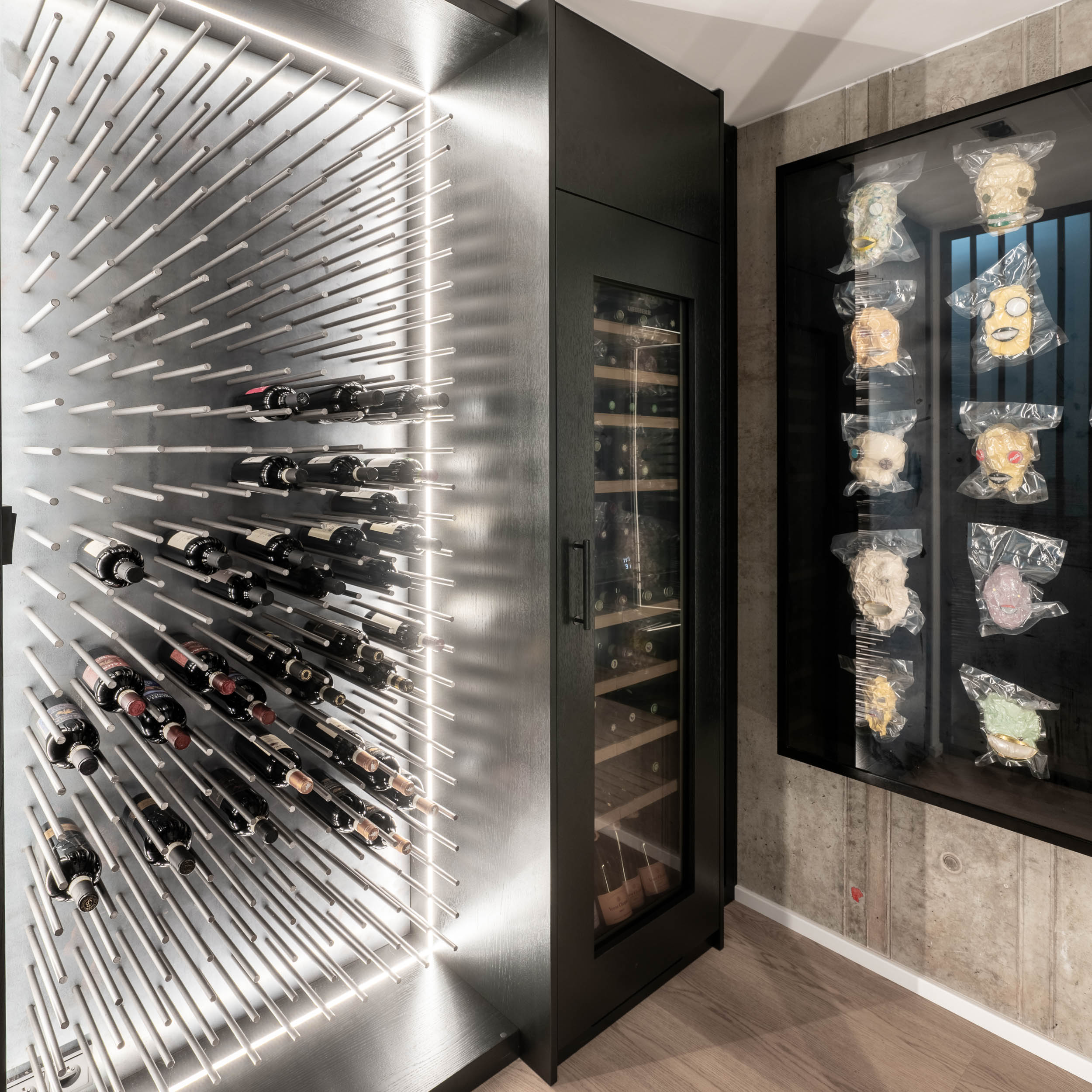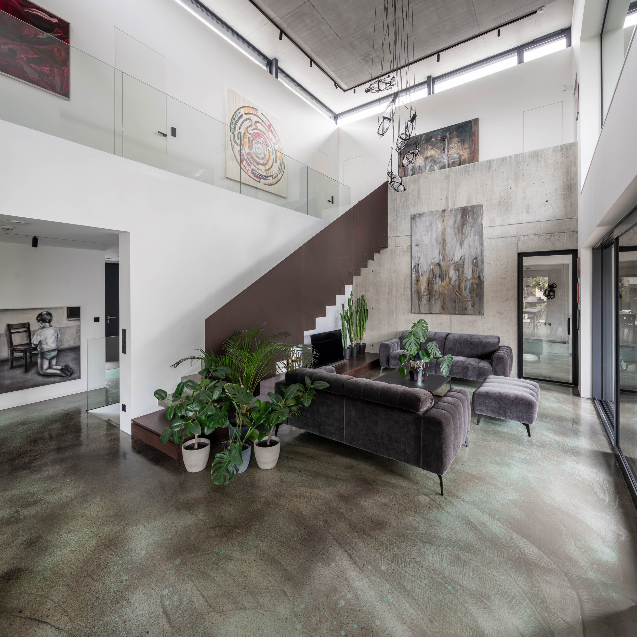 Tato unikátní vila na složitém pozemku s vnitřním prostorem otevřeným přes dvě patra měla původní zadání – vytvořit prostor pro vlastní umění. Ale musí být galerie pouze bílá? S tím jsme se neuspokojili. Naším cílem bylo vytvořit interiér, který bude zajímavý sám o sobě, ale zároveň nebude působit arogantně a nebude přehlušovat umění.